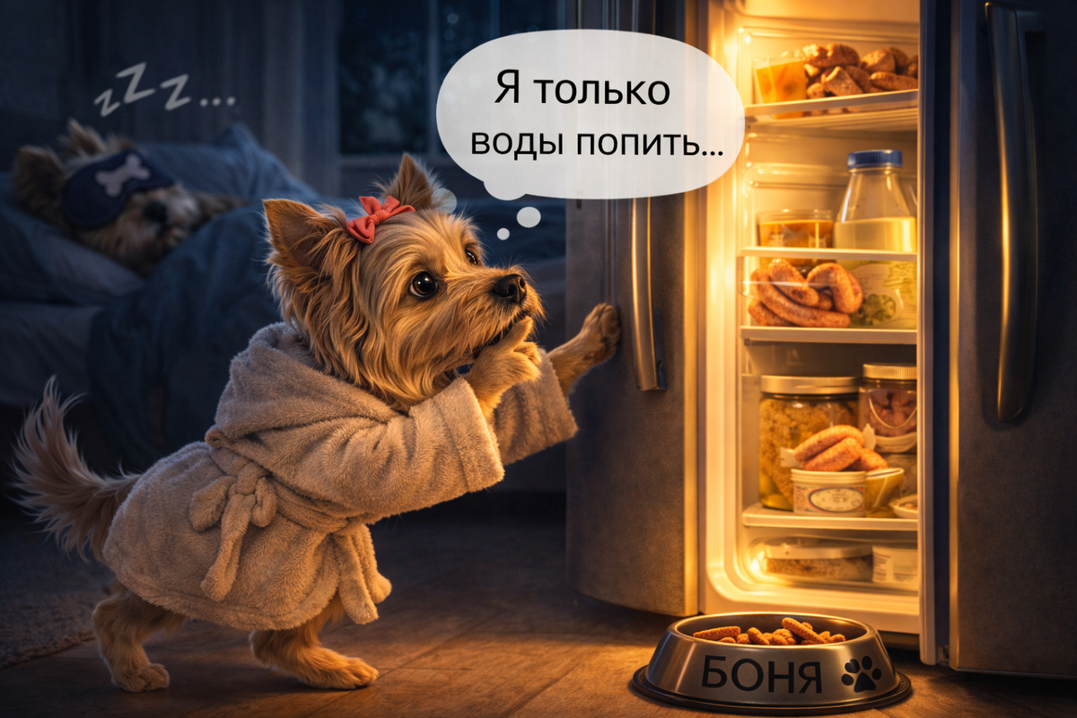 Она ест из своей миски и обязательно попробует из Вениной. Потому что еда из Вениной миски для Бони почему-то всегда кажется вкуснее.