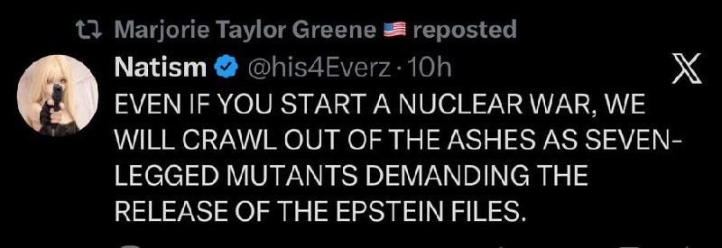 'EVEN IF YOU START NUCLEAR WAR WE WILL DEMAND EPSTEIN FILES' — MTG