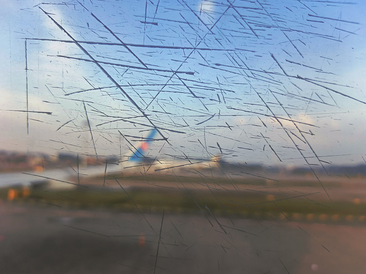 Царапины на всех иллюминаторах: безобразие или норма? В очередной раз негодую по поводу разгильдяйского отношения некоторых авиакомпаний к самолётам — и, как следствие, к комфорту пассажиров. Безопасность полётов для меня на первом месте, но вид за бортом — на втором: даже ночью есть на что посмотреть, а днём и подавно. Китайцы выдали Airbus A321 с бортовым B-1616 (первый полёт 14 января 2015 г., то есть 11 лет). По всем иллюминаторам как будто наждачкой прошлись — паутина царапин (crazing) снаружи. Видимость есть, но через крохотный чистый участок внизу. И это не один отдельно взятый иллюминатор — на борту все такие. В сети пишут, что это типичное явление для акриловых стёкол: перепады давления, песок/лёд на 900 км/ч, УФ-излучение и вибрация. Поверхностные микротрещины поддаются шлифовке и полировке на плановом ТО (C-check раз в 18–24 мес.) — 5–10 минут на окно. Несмотря на это, несколько кадров всё же удалось сделать, максимально приоткрыв диафрагму на объективе. Но большая часть кра