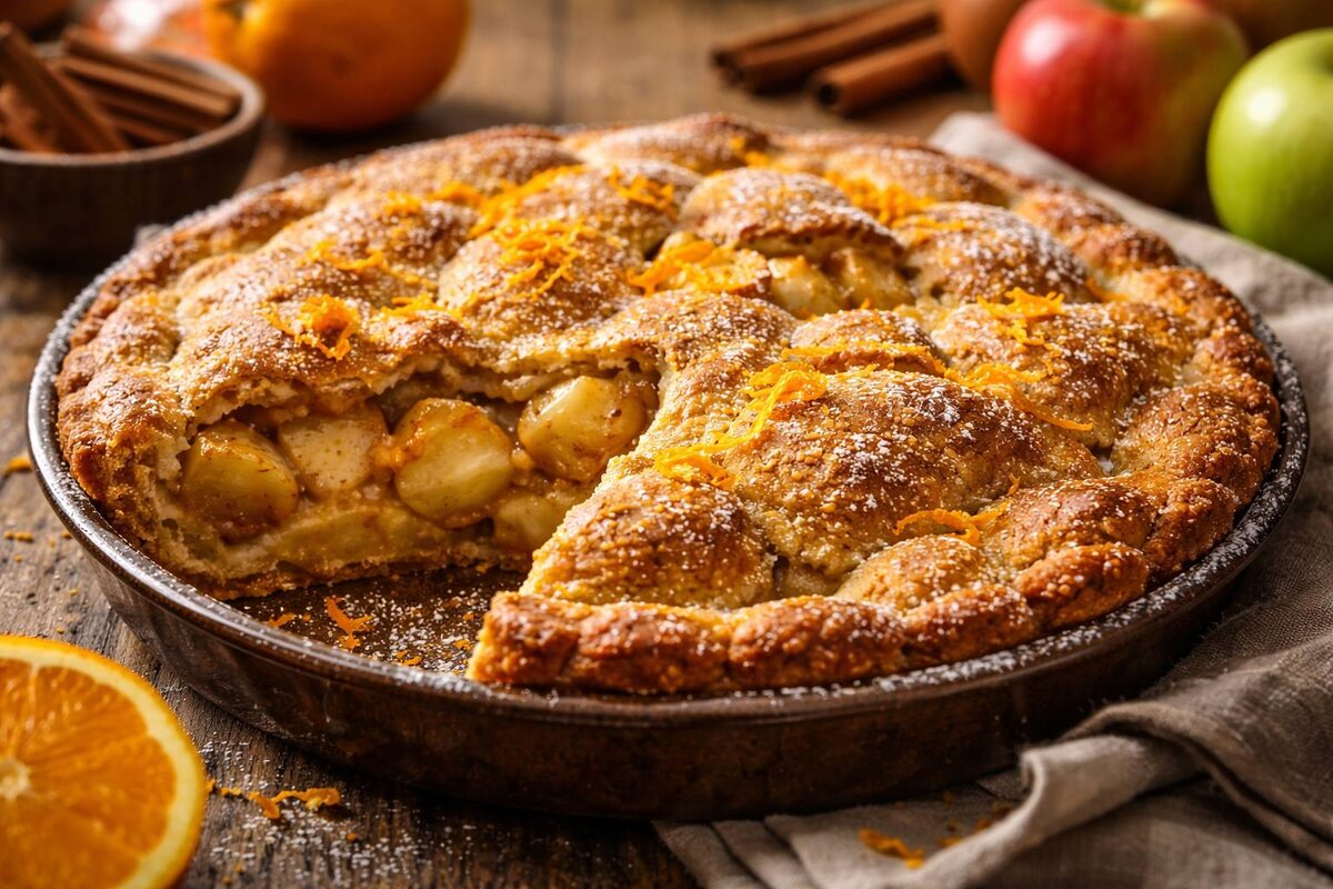 Яблочный пирог — это, пожалуй, самый домашний запах на свете. Стоит только нарезать яблоки, как кухня уже становится теплее. Тесто замешивается почти на автомате, руки сами знают, сколько муки, сколько сахара, сколько масла. Рецепт давно не записывается, он где-то внутри. И вот в этом “автомате" есть одна особенность. Пирог всегда получается хороший, но редко удивительный. Он мягкий, сладкий, с привычным вкусом, который не вызывает вопросов. Его едят с чаем, благодарят, просят добавку. И всё равно в глубине остаётся ощущение, что это просто яблочный пирог. Без характера. Я однажды поймала себя на мысли, что пеку его по одной и той же схеме целыми годами. Меняются сорта яблок, форма для выпечки, иногда добавляется корица, но аромат остаётся одинаковым. И тогда захотелось добавить что-то, что не перебьёт яблоки, а подчеркнёт их. Так в пироге появилась апельсиновая цедра. Яблоки сами по себе дают сладость и лёгкую кислинку. Тесто добавляет мягкость и плотность. Но аромат у такого пирога д
