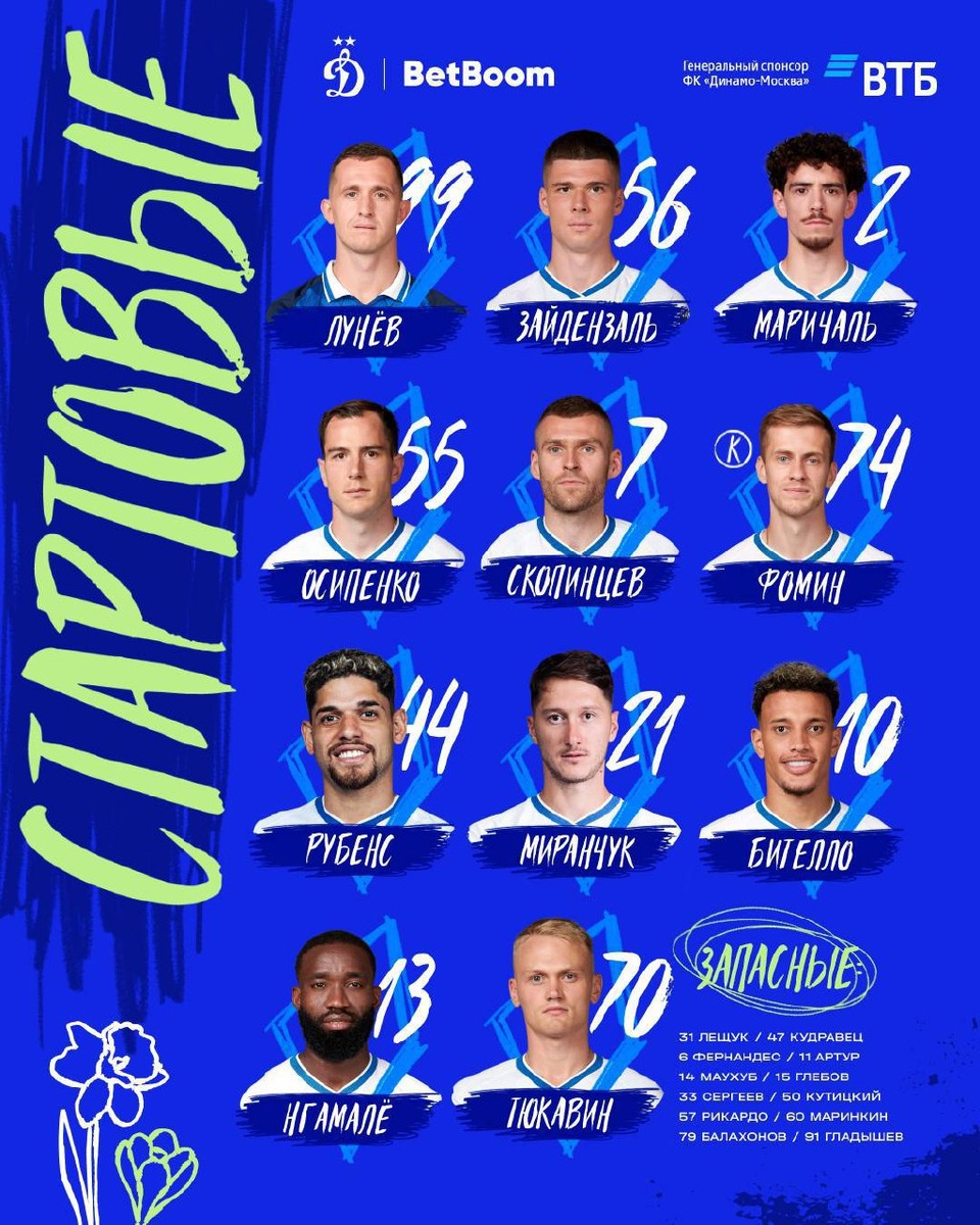 Ознакамливаемся с составами #ДинамоКС В воротах Лунев, слева в защите Скопинцев, а не Рубенс, что, конечно, огорчает. Нгамале тоже в старте, что он тут забыл? Нужно побеждать! ⚽️ Подписывайтесь на БуДсу!