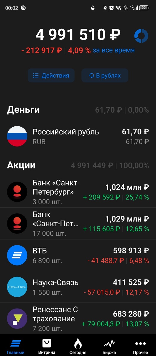 Рассказываю о своем инвестиционном портфеле российских акций, его прошлом, настоящем и будущем, а также показываю картинки с котиками, куда же без них :) Продолжение. Предыдущая часть тут. И прежде чем продолжить Предупреждение! Всё что написано выше и ниже не является инвестиционной рекомендацией. Как-то так. Подошла к завершению 224я публичная неделя моего инвестиционного портфеля российских акций (только акции, только хардкор). Портфель за неделю подрастерял 72 тысячи, но на фоне предыдущего роста сохранил некоторый запас прочности. Индекс Мосбиржи поднапрягся и немного подрос, закрывшись в пятницу вечером на отметке 2799,14 пункта. По текущим продажам/покупкам. Во вторник, первый полноценный торговый день на прошедшей неделе, закинула плановую пятитысячную купюру на счет, посмотрела, что да как и купила 57 штук ВТБ «на все». Больше продаж/покупок на неделе не было. Префы банка Санкт-Петербург (БСПБ) пока держу, не продаю хотя с каждым днем все труднее глядя как падают котировки:)