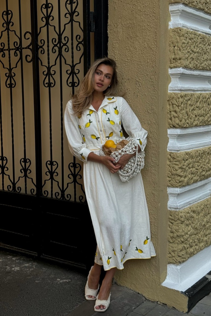Белое льняное платье с лимонами — когда хочется лета и лёгкости