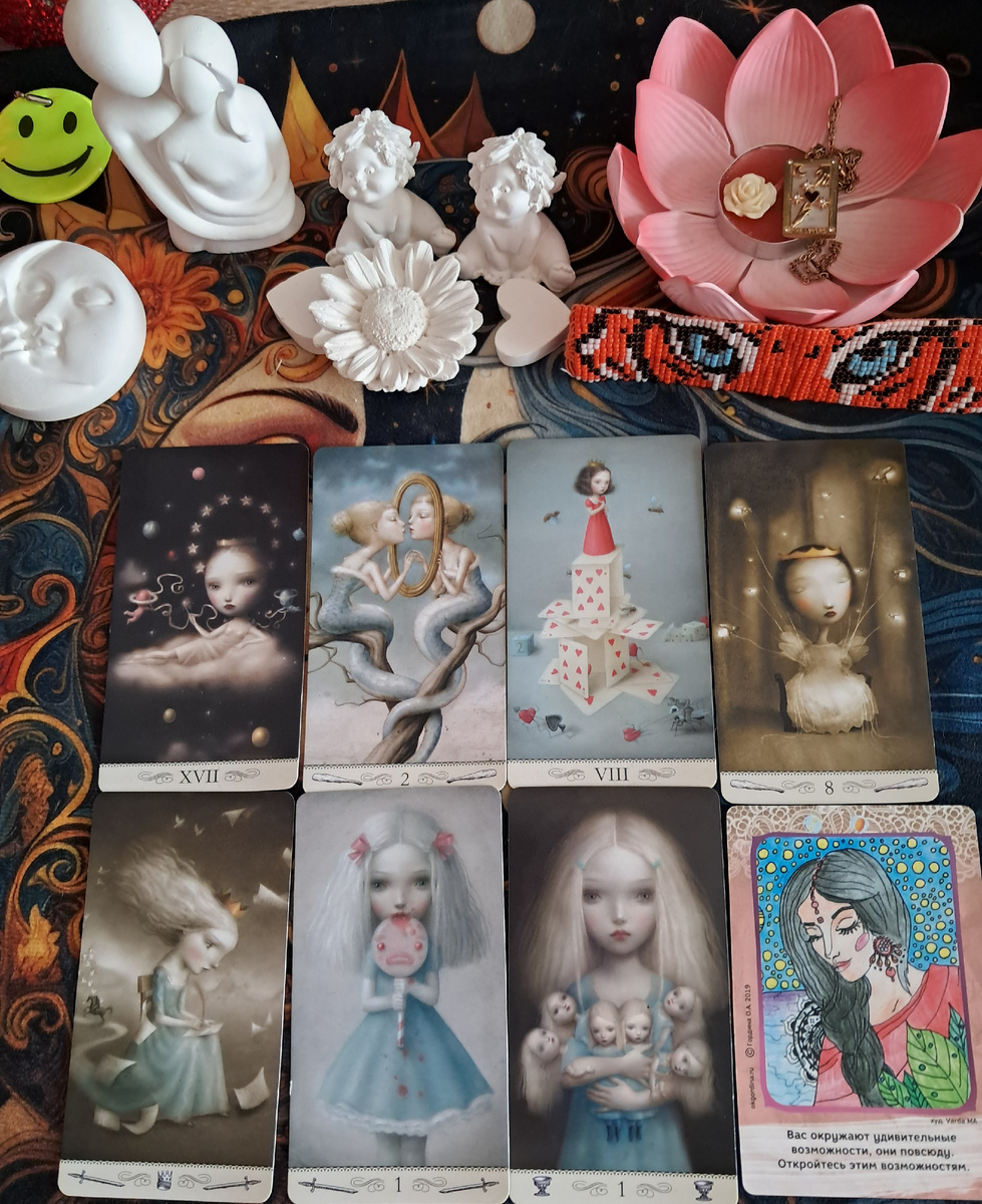 Этот расклад на колоде «По ту сторону снов» указывает на очень мощный, многогранный скрытый талант, который лежит на стыке ясновидения, интеллекта и способности влиять на реальность силой мысли и слова. Ваш дар — не просто одно умение, а целый комплекс, который делает вас проводником высших истин.