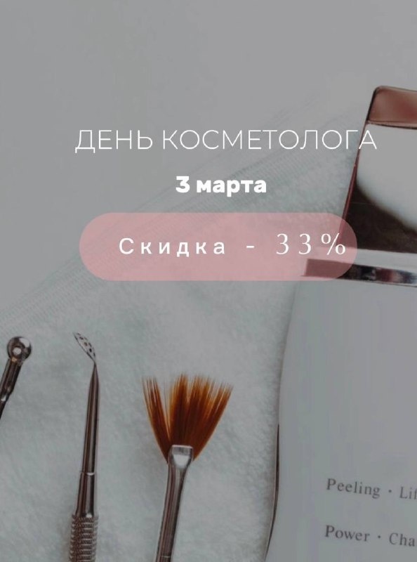 ! Приглашаем вас на День косметолога 3 марта! Только в этот день на наши спа-уходы действует невероятная скидка -33%! 💥 ✨ Волшебное преображение – всего 5000₽ вместо 7500₽: ✔ Микротоковая терапия ✔ Пластический массаж ✔ Маска по типу кожи ✔ Интенсивная сыворотка ✔ Расслабляющий уход для рук ✨ Заряд свежести – всего 4800₽ вместо 7200₽: ✔ Электропорация ✔ Массаж криосферами ✔ Маска по типу кожи ✔ Интенсивная сыворотка ✔ Расслабляющий уход для рук Все процедуры выполняются на косметике Gerard’s – это итальянская премиум-линия, которая питает, увлажняет и восстанавливает кожу, делая её сияющей и здоровой! Ждём вас на День косметолога – подарите себе заботу и красоту! 💕