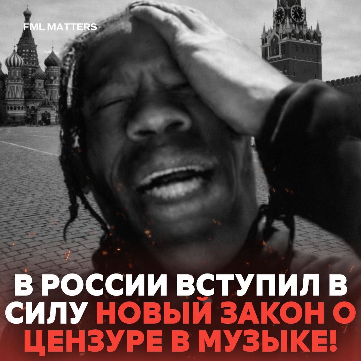 🤬 В РОССИИ ВВЕЛИ ТОТАЛЬНУЮ ЦЕНЗУРУ В МУЗЫКЕ! С 1 марта 2026 года вступил в силу закон, запрещающий пропаганду наркотиков в музыке. И речь не только о прямых упоминаниях — под раздачу попадают метафоры, иронические высказывания и даже жесты в клипах, если их можно связать с запрещёнными веществами. Закон работает на всех — и на русских, и на западных артистов. Любой релиз, где усмотрят пропаганду, просто заблокируют. По сути, теперь под раздачу может попасть добрая половина западного рэпа, где упоминания веществ — это просто часть лексикона. 💀 FML MATTERS