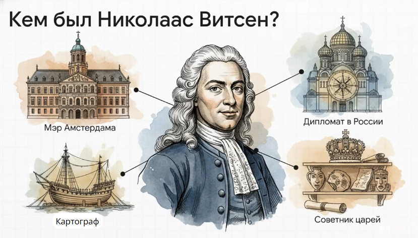 Речь идет о фундаментальном труде Николааса Витсена под названием «Noord en Oost Tartarye» (Северная и Восточная Тартария). Первое издание вышло еще в 1692 году. Это не просто книга, а результат двадцатилетних изысканий бургомистра Амстердама. Он посвятил жизнь тому, чтобы систематизировать знания о землях, которые для Европы тогда были сродни другой планете. Три огромных тома, личная переписка с Петром I и сотни свидетельств очевидцев.
