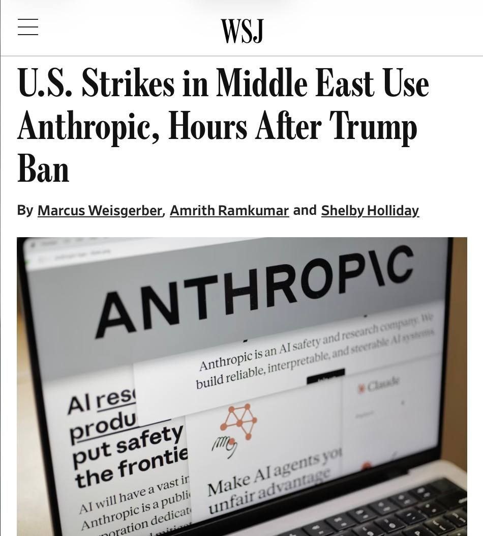 «ԱՄՆ-ը հարվածներ է հասցրել Մերձավոր Արևելքին՝ օգտագործելով Anthropic արհեստական ինտելեկտը». ԱՄՆ-ը արգելված Թրամփի կողմից արգելված ԱԲ ։