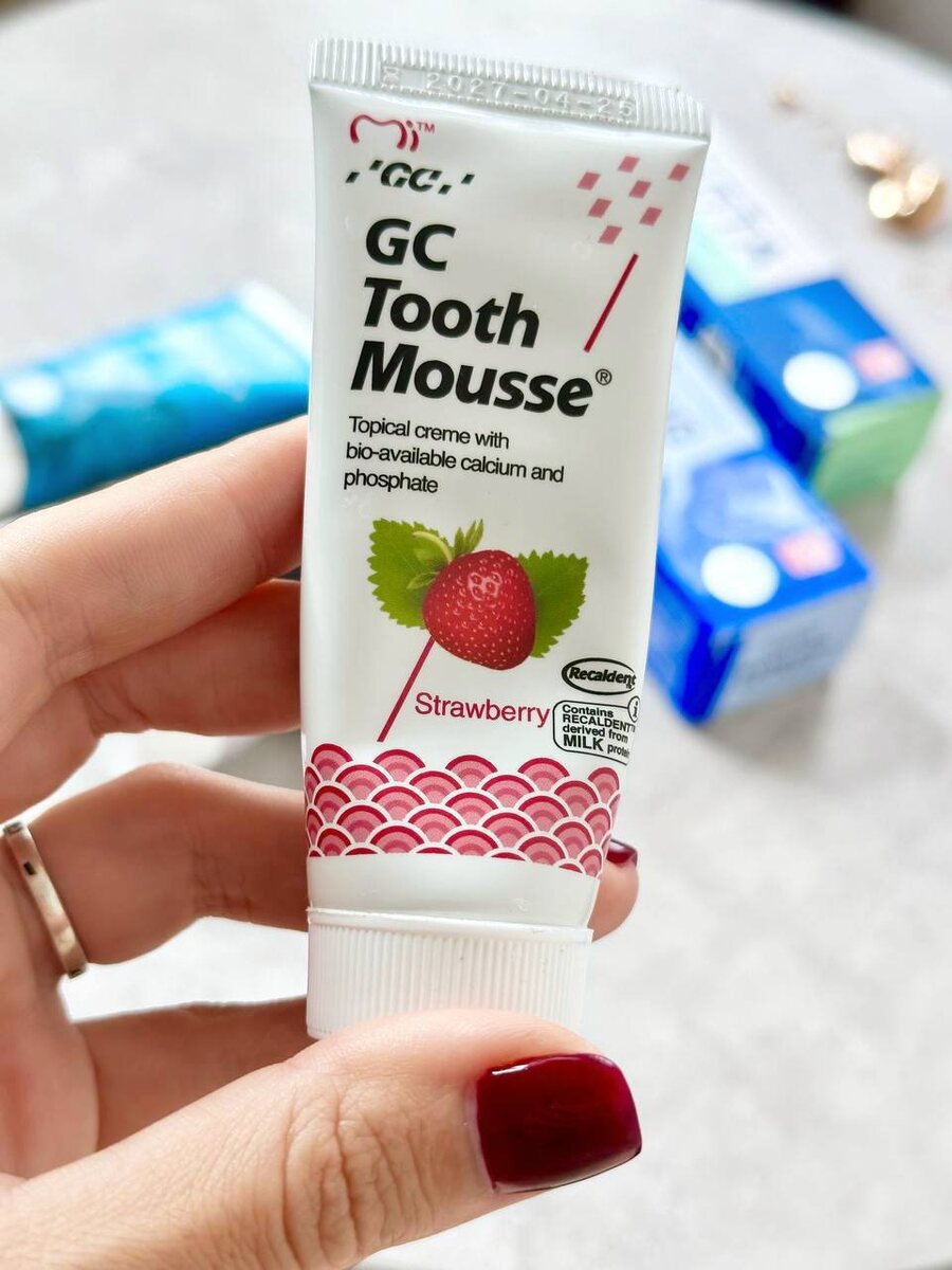 GC Tooth мусс для укрепления зубной эмали мне порекомендовала стоматолог. Показывала вам его, как только начинала пользоваться, и покажу снова спустя время, так как сложилось полноценное мнение. У меня всегда были чувствительные зубы, а после реставрации чувствительность стала еще выше. Я не слышала про этот бренд, но доверилась профессионалу. К тому же, у стоматолога были клиенты с подобными проблемами, и они разрешились благодаря муссу. Из беседы в Телеграм поняла, что многие из вас тоже с муссом знакомы и довольны эффектом.