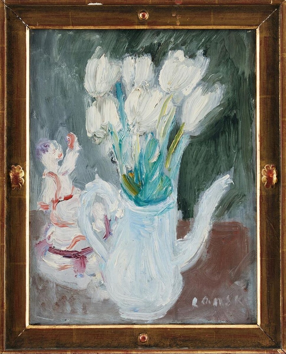 Цветы в белой вазе (конец 1920-х — конец 1930-х годов), могли бы стать исключительным коллекционным подарком к 8 марта💐. 🌄 Для собирателей живописи натюрморт ценен прежде всего, как редкий образец доабстрактного периода мастера: работа запечатлела те поиски в рамках фигуративного искусства, которые предшествовали его знаменитому уходу в лирическую абстракцию. В камерном холсте (35 х 27 см) отчетливо прочитывается связь с импрессионистической школой Константина Коровина и рафинированная французская стилистика. Живопись этого времени в творчестве Ланского — «русского парижанина» и яркого представителя второй Парижской школы — строится на сочетании декоративности, сложного колорита и экспрессивной пастозной фактуры. Безупречный провенанс натюрморта восходит к собранию влиятельного парижского дилера Жака Дюбура, чья галерея на бульваре Осман представляла Ланского с конца 1920-х годов. Авторство подтверждено официальной экспертизой Ю. В. Рыбаковой. Лот позволяет увидеть ту стадию разви