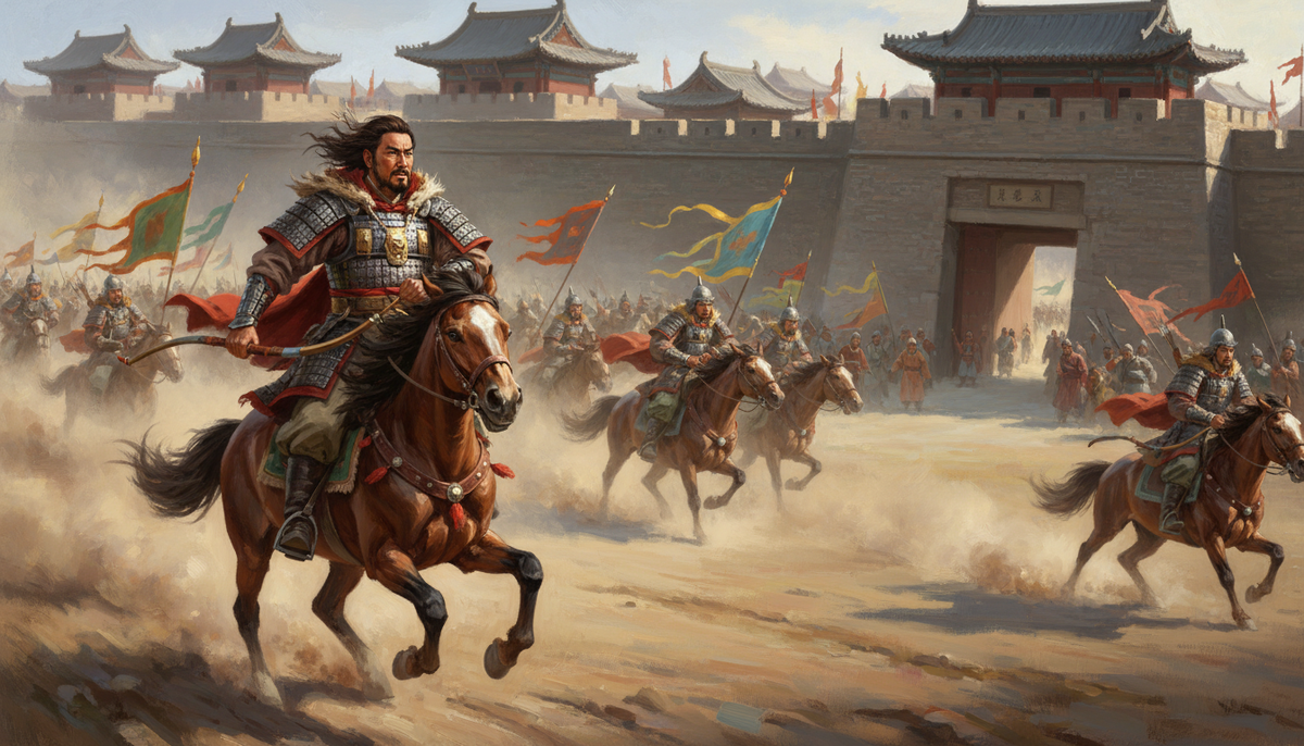Пока основная армия методично разоряла окрестности, он со своим корпусом рванул к восточной столице империи — Ляояну. Подошёл к стенам, демонстративно пошумел, покричал что полагается и ушёл, нагруженный добычей. Классическая кочевническая тактика: пришёл, взял что мог, исчез.