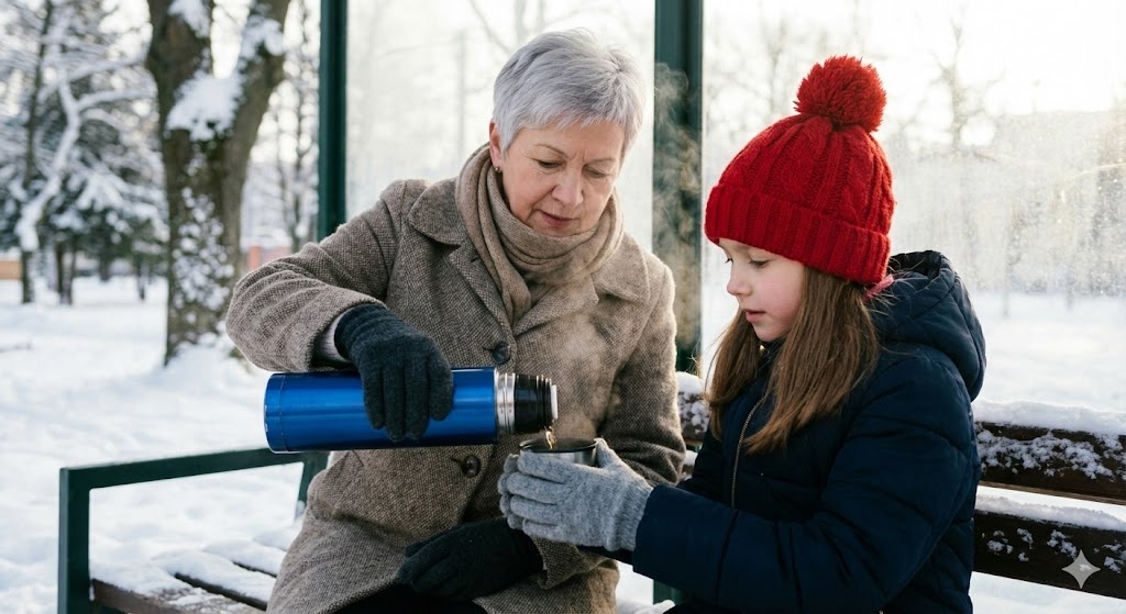 Утро выдалось морозным — минус двадцать, иней на деревьях. Вера вышла раньше обычного. Термос в одной руке, шапка — в другой.