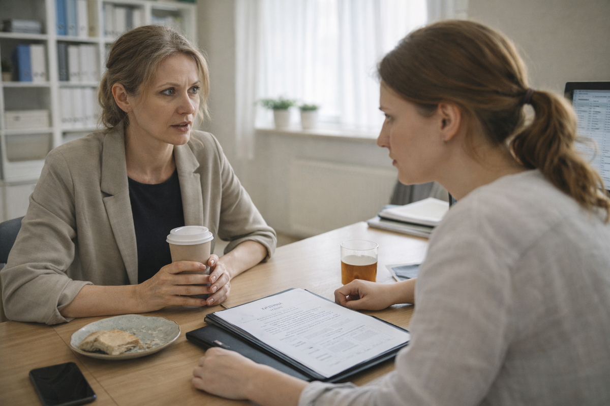 Я провела собеседование от начала до конца. Профессионально, ровно, без единого лишнего слова. Спрашивала про опыт, про управление командой, про сложные ситуации с клиентами. Она отвечала чётко. Видно было, что готовилась.