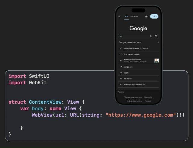 Сегодня речь про WebView. WebView позволяет отображать контент интернет сайтов прямо в приложении. Использование довольно просто: - импортируем фреймворк WebKit - вызываем WebView и передаем ему url-адрес нужной страницы. Пользуйтесь)