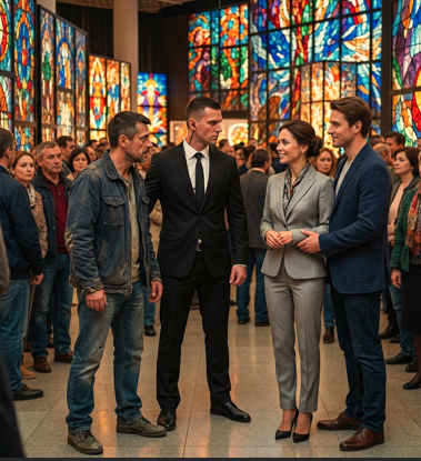 Прошло немного времени. Олег, бывший однокурсник, который всегда крутился в высших кругах, вытащил Игоря на закрытую выставку декоративного искусства. Просторный зал пах деревом, типографской краской и парфюмом гостей. Игорь лениво слонялся между стендами, как вдруг кто-то из посетителей случайно задел его. Бокал в руке Игоря дрогнул, и минеральная вода щедро выплеснулась прямо на выставленный на продажу невероятной красоты стеклянный витраж.