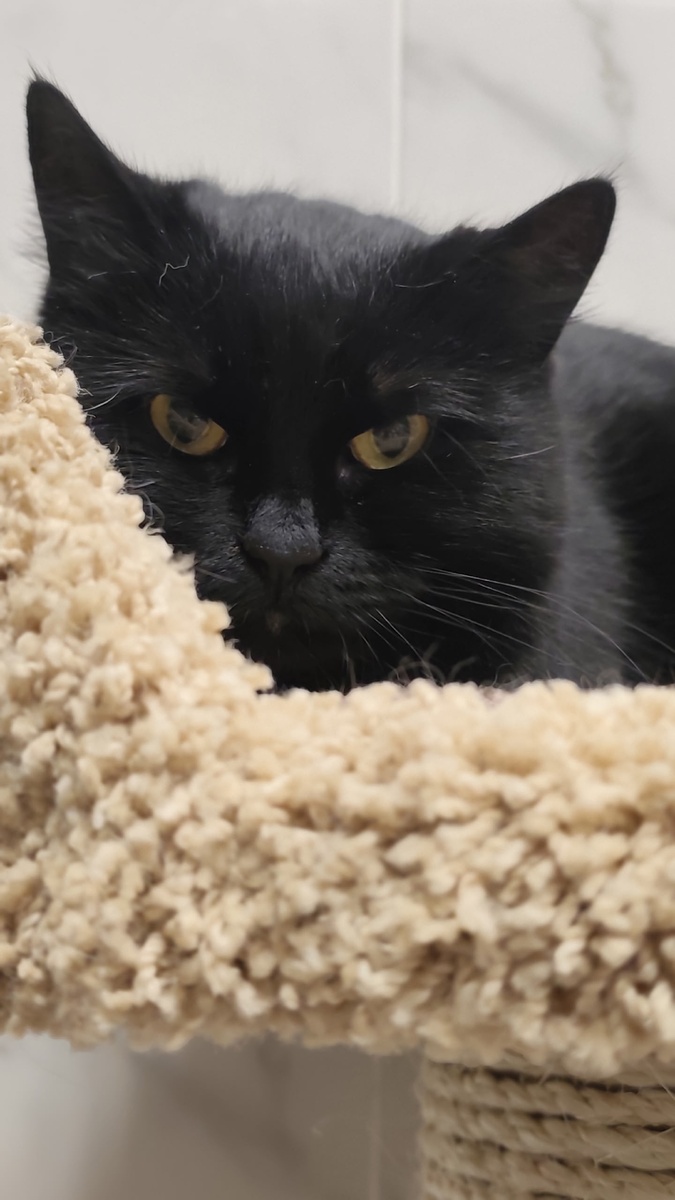 Ариша – это маленькое черное облако доброты и ласки. Ее мягкая шерстка так и манит прижаться покрепче, а добрые глазки излучают тепло и любовь. Эта миленькая девочка обожает сидеть на руках или просто рядом тихонечко мурча от счастья.