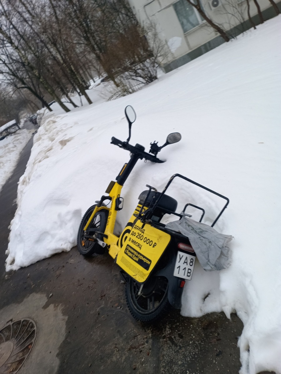 Чей электровелосипед за домом 11 по Щелковскому ш.? Кто-то спер и бросил? Может, кто ищет, ведь за него деньги потребуют... Почему другие курьеры не помогают своему собрату?