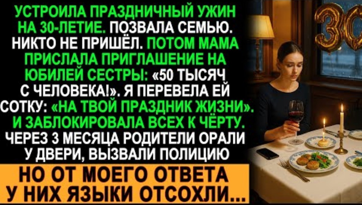 За две недели до тридцатилетия сидела дома и думала: как отметить? Не хотелось шумных вечеринок с малознакомыми людьми из коворкинга. Хотелось семьи. Настоящей, тёплой, как в детстве, когда ещё не понимала, что любовь бывает разной.