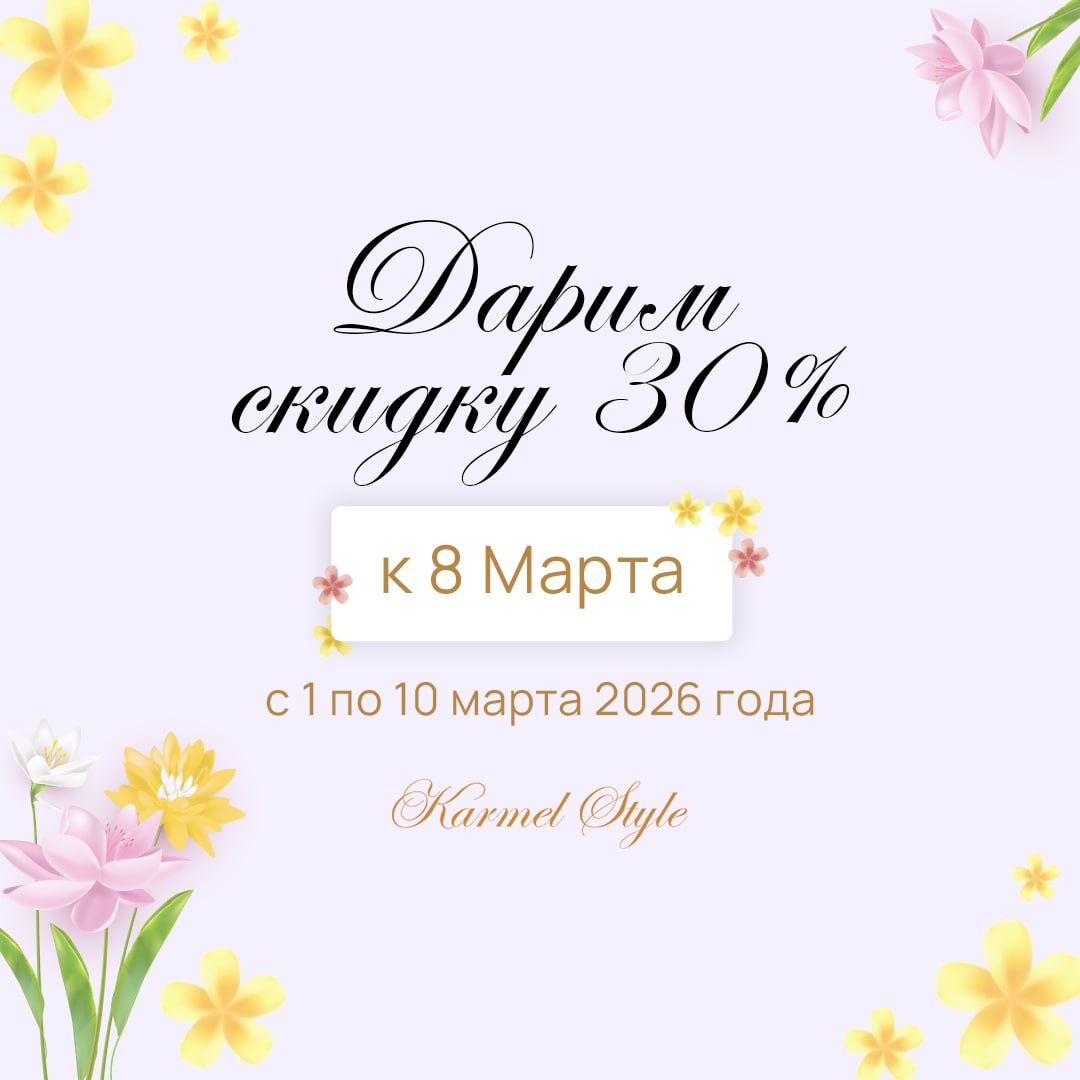 Весна — хороший повод обновить гардероб. В честь 8 марта мы предоставляем скидку 30% на продукцию KarmelStyle. Акция действует с 1 по 10 марта. Обратите внимание: скидка применяется при оформлении заказа через менеджера и не отображается автоматически на сайте. Выбирайте модели для межсезонья и весны: 🔗 https://karmelstyle.ru/ Если нужна консультация: ☎️ 8 (495) 781-37-51 ☎️ 8 (977) 410-25-26 Реклама