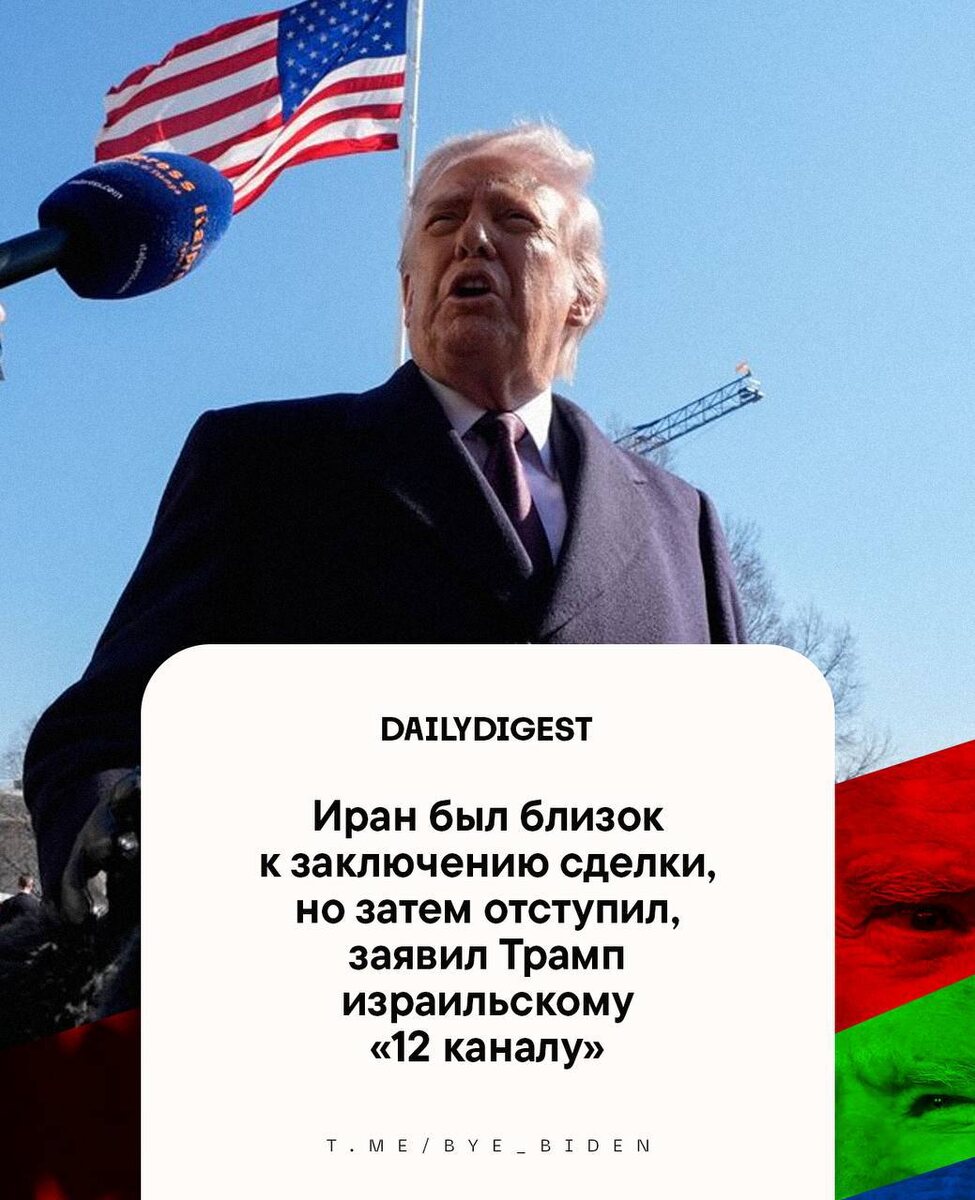 : 🔹Иран был близок к заключению сделки, но затем отступил, заявил Трамп израильскому 12-му каналу. 🔹Иран подтвердил гибель начальника Генштаба ВС генерал-лейтенанта Абдольрахима Мусави, а также командующего Корпусом стражей исламской революции, министра обороны, а также секретаря Совета обороны страны — IRNA. 🔹 Количество погибших в результате атаки на начальную школу в Иране возросло до 148, сообщает Tasnim со ссылкой на прокурора. 🔹В Иране будет сформирован временный руководящий совет, который будет исполнять обязанности верховного лидера до избрания преемника Хаменеи, — председатель парламента. 🔹Генсек ООН призвал к немедленному прекращению боевых действий в свете событий вокруг Ирана, чтобы не допустить тяжелых последствий для гражданских лиц. 🔹Действия Израиля и США неприкрыто направлены на дальнейшее вмешательство во внутренние дела Ирана и уничтожение неудобной Западу страны — Небензя. 🔹Трамп пригрозил Ирану ударом «невиданной ранее силы» в случае ответной атаки.