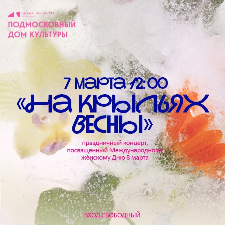 ✨ Скоро весна 💚 И мы готовы ее встретить! Вы с нами? Ждём вас на праздничном концерте, посвящённом Международному женскому Дню 8 Марта "На крыльях весны". 📆 07.03.2026🕒12:00 🏢 Подмосковный сельский дом культуры (СДК) 📍 г.о.Домодедово, пос.санатория Подмосковье, д.9 💰 Вход свободный❗️ ✅ Мероприятия Домодедово https://dzen.ru/id/66f10385cc4c5a16f7b5fb02 http://vk.com/domodedovo_events http://dzen.ru/domodedovo_events