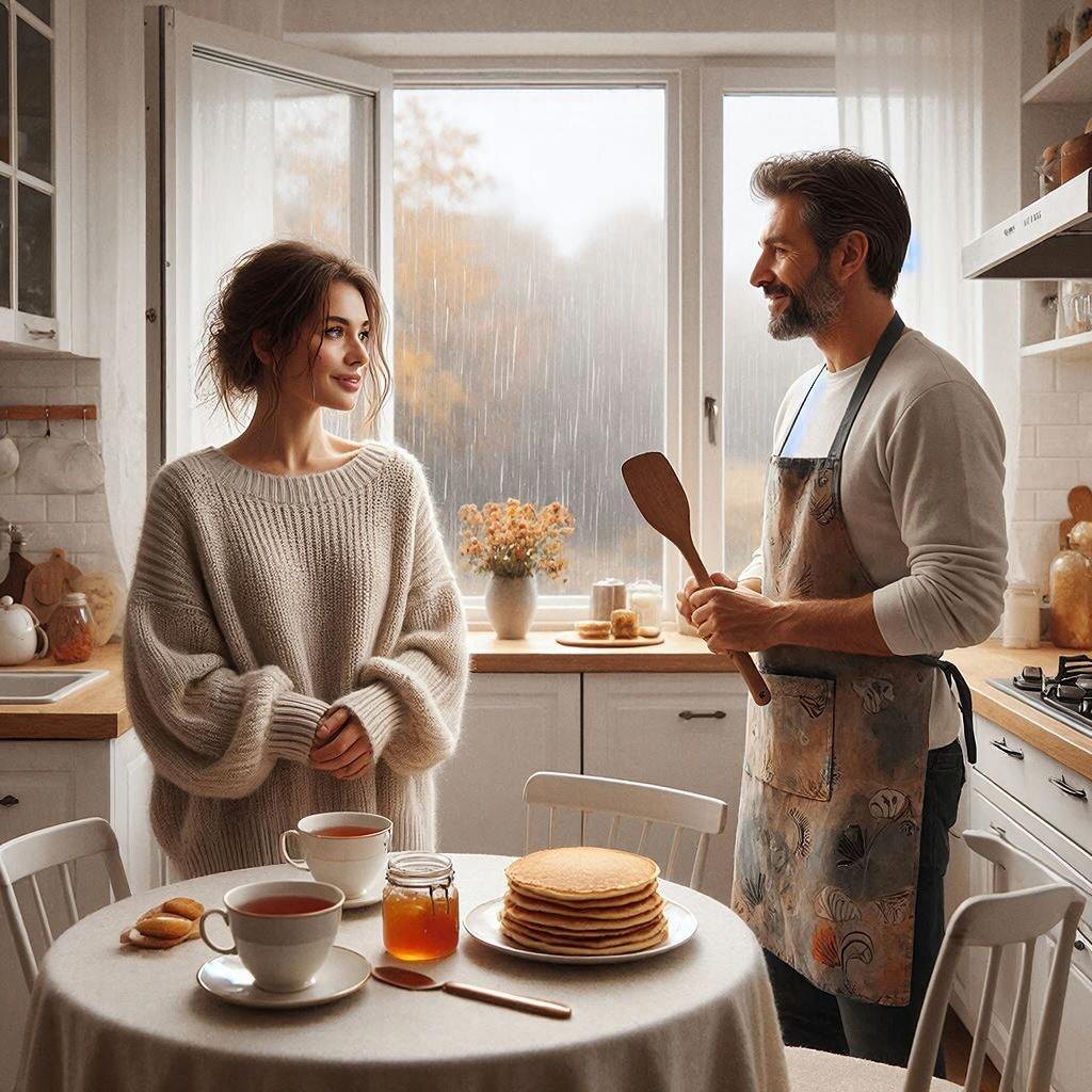 "Им понадобился один вечер, чтобы вспомнить всё. Дождь за окном, её руки в его ладонях и тот самый взгляд, который они чуть не забыли." Они сидели на кухне и пили чай, как делали это двадцать лет подряд. Он — напротив неё, в той же футболке, с той же трехдневной щетиной, с тем же уставшим взглядом в телефон. Она — в его старой кофте, которую носила уже лет десять, потому что в ней тепло, а не потому что она ему нравилась когда-то. За окном шумел дождь. Осенний, холодный, бесконечный. — Молоко купить? — спросил он, не отрываясь от экрана. — Купи, — ответила она, размешивая сахар. И всё. Раньше она спрашивала, как прошёл день. Раньше он рассказывал. Раньше она смеялась его глупым шуткам. Раньше он ловил её руку, когда она проходила мимо. Раньше — это было так давно, что казалось, не с ними. Она смотрела на него через стол и пыталась вспомнить, когда в последний раз видела его глаза. Не эти, усталые, потухшие, а те — молодые, горячие, влюблённые. Когда он смотрел на неё так, будто она — е