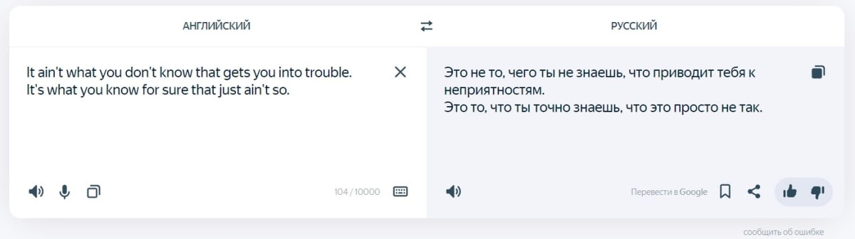 И, как это часто бывает, перевод оказался удобной, но неточной калькой. В русскоязычном интернете она обычно звучит так: «Все проблемы не от незнания, а от ошибочной уверенности в собственном знании». Смысл вроде бы верный, гладкий, правильный. Я всегда был обеими руками "за". Но оригинал Марка Твена (а приписывают именно ему) звучит жёстче и точнее: «It ain't what you don't know that gets you into trouble. It's what you know for sure that just ain't so.» И вот тут начинается магия нюансов. Дословно это ближе к: «В беду нас приводит не то, чего мы не знаем. В беду нас приводит то, в чём мы уверены абсолютно, но что на самом деле — ложь.» Чувствуете разницу? Русский вариант — про незнание и ошибки. Это про сомнения и недостаток информации. Оригинал — про уверенность и самообман. Это про наши священные коровы, про то, во что мы верим, как в истину, даже если эта истина нас убивает. Это не просто игра слов. Это два разных взгляда на мир. Одно дело — бояться темноты (того, чего не зн