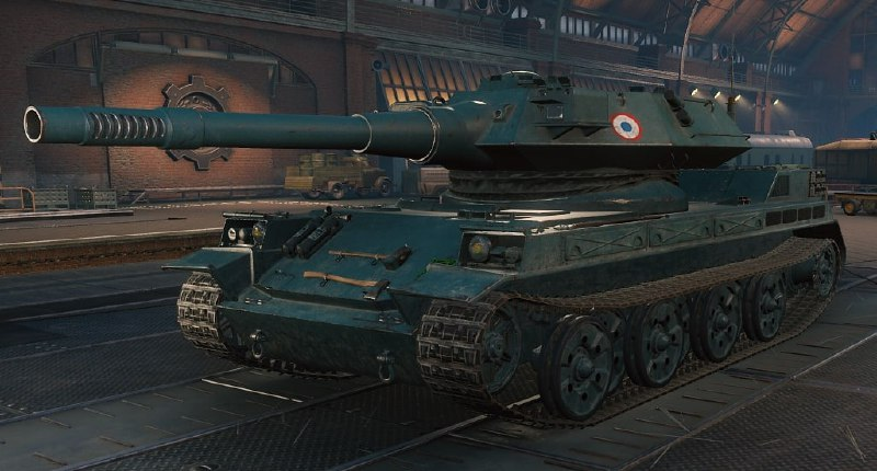 С огромной долей вероятности данное чудо не существовало, впрочем, оно пытается мимикрировать под французские САУ 50-х. Шасси здесь - от Bat.-Chat. 12t, причем проектного, но оно было усилено и увеличено. Двигатель - довоенный авиационный Hispano-Suiza, орудие - реальная 155мм гаубица образца 1950 года (которая в игре стоит на Lorr. 155 mle. 50 и 51), а угловатый корпус лично мне напоминает М113, повидавший некоторое.