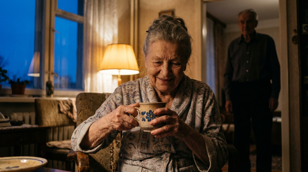 Я поставила. Заварила чабрец. Запах заполнил маленькую кухню, просочился в коридор, дотянулся до комнаты. Вадим Петрович вошёл. Тамара Дмитриевна подняла на него глаза, и я увидела то, чего не видела ни разу за все эти годы. Она улыбалась. Не вежливо, не через силу. По-настоящему. Лицо стало другим – мягче, моложе. Будто кто-то снял с него слой, который нарастал годами, и под ним оказалась та самая девушка с фотографии. Та, которая верила, что жизнь – это крыльцо, чай и голос любимого.