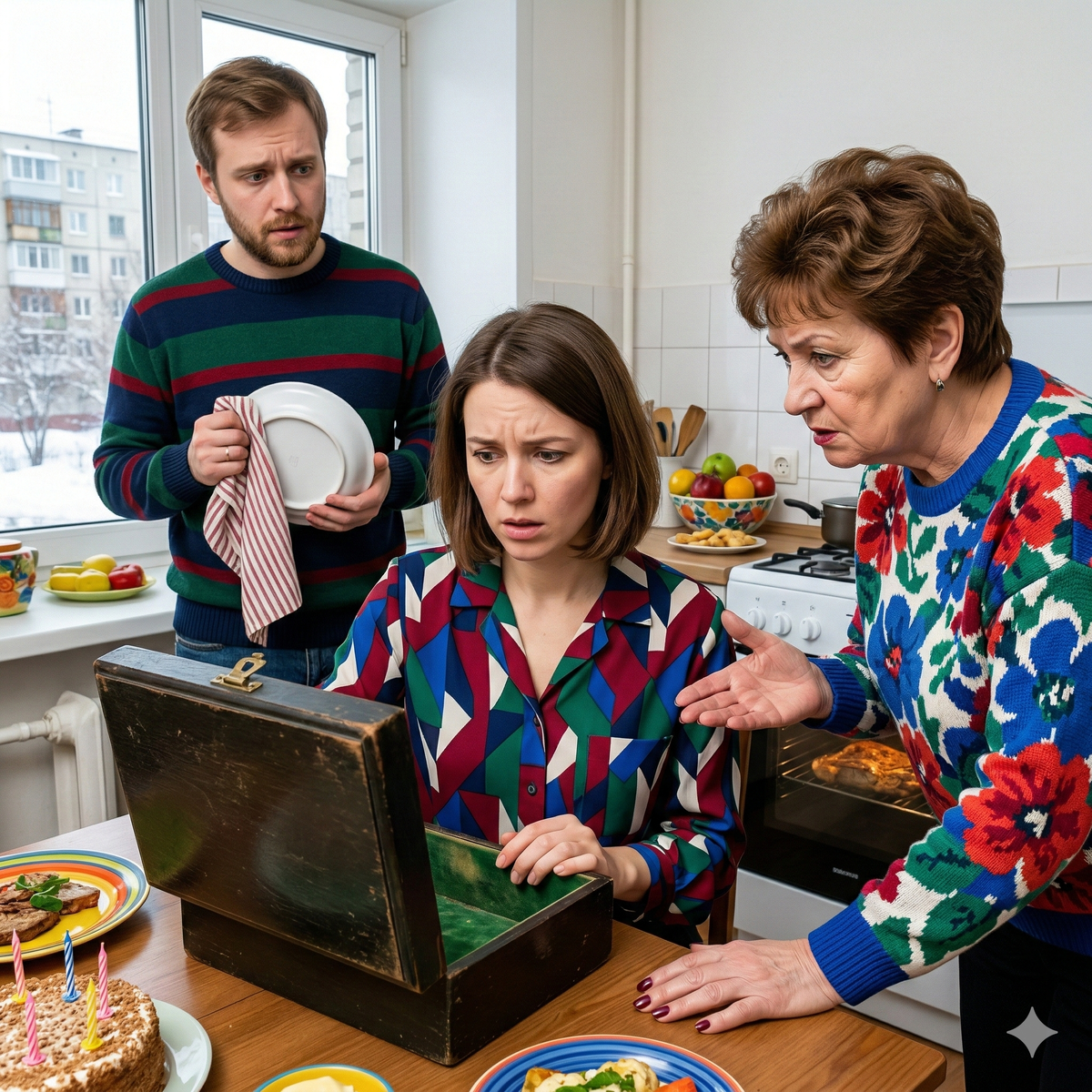 — Лера, я сказала — открой сейчас, — свекровь постучала ногтем с бордовым лаком по столешнице. — Это старинная вещь, семейная. Хочу видеть твою реакцию.