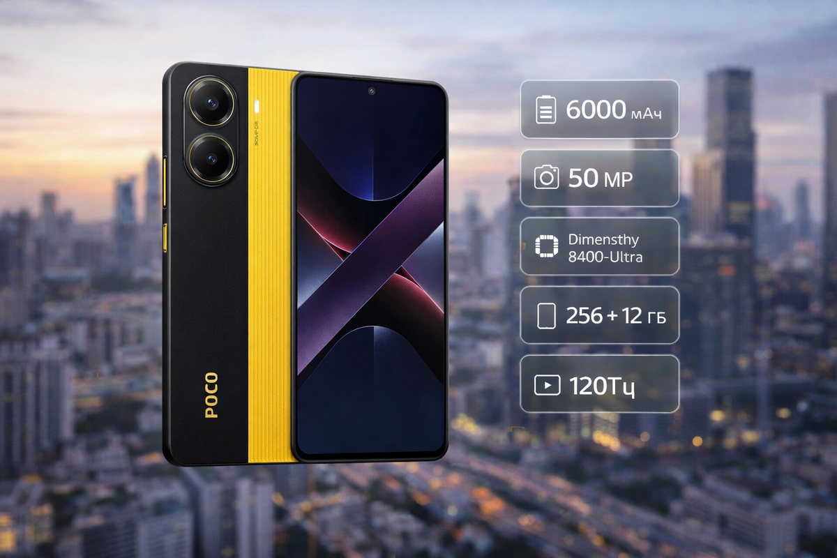 Всем привет ! Вы на канале электроник, а значит будете в курсе самых интересных новинок и надежной классики в мире гаджетов. Как обозреватель, я всегда с интересом смотрю на устройства суббренда POCO. Когда-то этот проект начинался как эксперимент внутри Xiaomi — сделать максимально производительный смартфон за адекватные деньги. В 2018 году с выходом Xiaomi Pocophone F1 компания буквально взорвала рынок: флагманский процессор по цене середняка. С тех пор философия POCO остаётся прежней — максимум мощности за свои деньги. Сегодня у меня на обзоре POCO X7 Pro в ярком жёлтом цвете, версия 12/256 ГБ. И скажу сразу — смартфон получился интересным, но не без нюансов. Жёлтый цвет — это фирменная фишка POCO. Аппарат сразу выделяется на фоне скучных чёрных и серых моделей. Корпус выполнен из стекла и пластика, ощущается крепким. Вес — 195 граммов, толщина 8,3 мм — в руке лежит уверенно. Отдельный плюс — защита IP68. Для устройства этого сегмента это серьёзное преимущество: защита от пыли и вод
