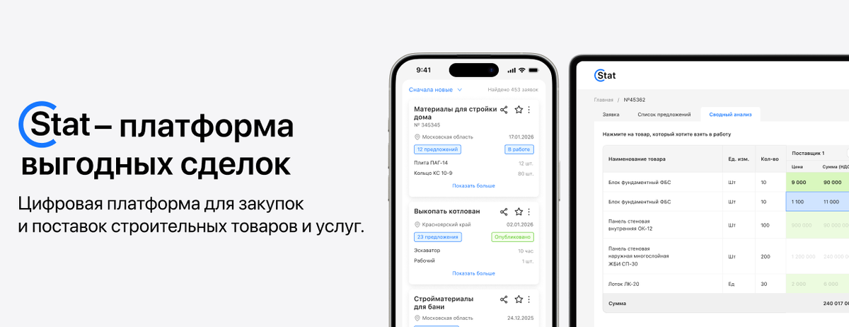 Stat - это платформа выгодных сделок, где заказчики уже разместили свои заявки, и вы можете сразу отправлять коммерческие предложения - без поиска контактов, звонков и долгих переговоров. Реально мощный инструмент для поставщиков и предпринимателей, а так же для обычных людей, которые хотят сэкономить время и деньги. Stat - ищет поставщиков сам, только разместить заявку Переходи, тестируй stat-sm.pro первые 2 месяца АБСОЛЮТНО БЕСПЛАТНО