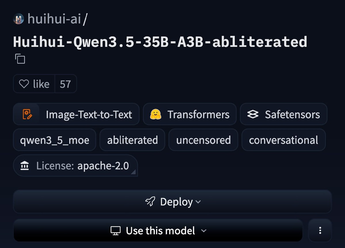 Разработчики huihui-ai выпустили модель huihui-qwen3.5-35b-a3b-abliterated без ограничений и фильтров. Модель не содержит отказов и не использует transformerlens. • Основана на Qwen 3.5, обеспечивает высокое качество изображений. • Для установки требуется Ollama; доступна подробная инструкция. • Разработчики предупреждают о возможном генерировании экстремального контента. Модель работает без цензуры, регистрации и ограничений. https://dzen.ru/id/5c0e38ff46ef5c00aaa80527