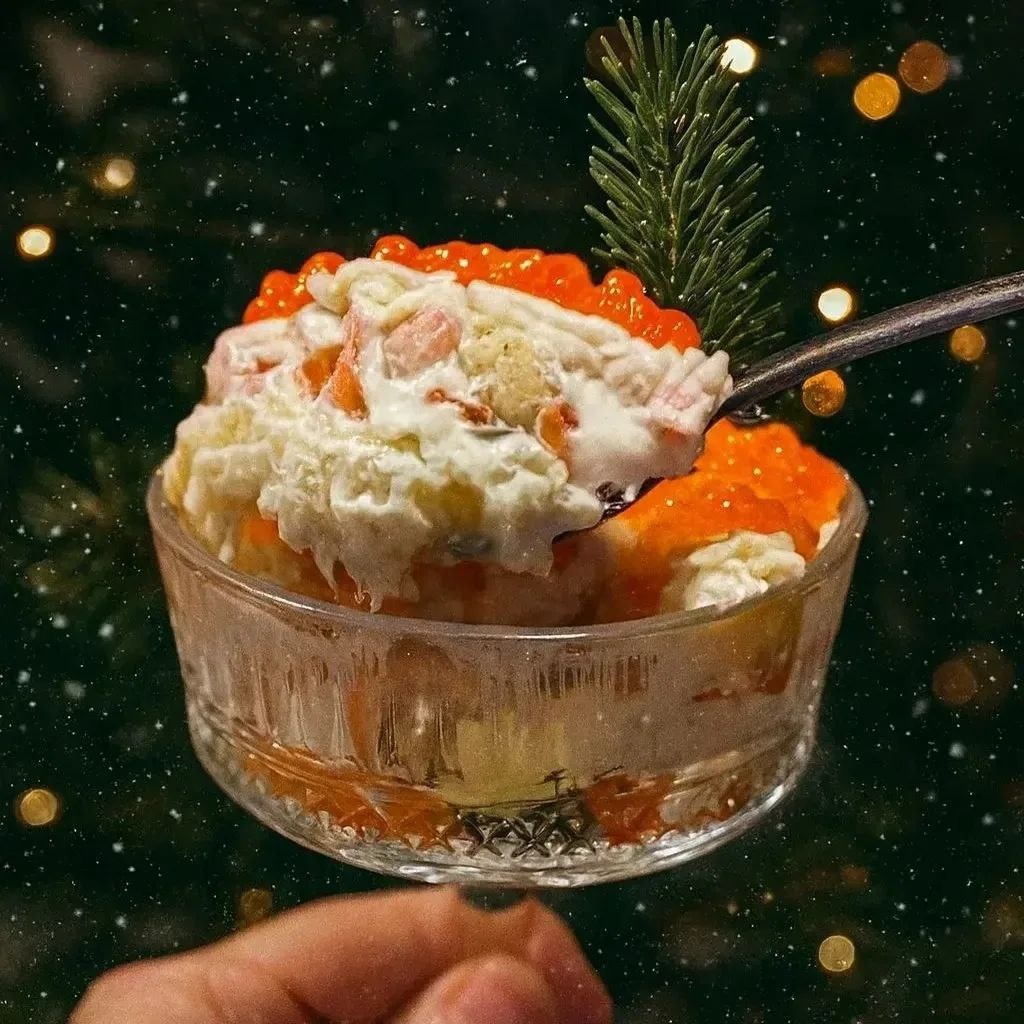 " В этом блюде идеально сочетаются сочные овощи, хрустящие элементы и нежная заправка, создавая незабываемое впечатление. Лёгкость и свежесть салата делают его прекрасным выбором для любого случая – от повседневного обеда до праздничного ужина. 🎄Нам понадобится: форель/сёмга слабосолёная 200 гр креветки отварные 200 гр сырок плавленный 3 штуки (дружба, карат) 2 средние отварные картофелины лук зелёный 100 гр красной икры майонез 100 гр рыбку нарезаем на мелкие кубики, креветки на небольшие кусочки, картофель и сыр трём на крупной тёрке, лучок зеленый нарезаем мелко 🎄Собираем салат в такой последовательности: 1/2 всей рыбки лук майонез 1/2 тёртого картофеля майонез 1/2 креветок майонез 1/2 тёртого сыра майонез все повторяем в 2 слоя, не готовьте в 1, я проверяла, в двойном объеме продукты дают максимум вкуса! дайте настояться пару часов и перед подачей украсьте красной икрой. Понравился рецепт?
