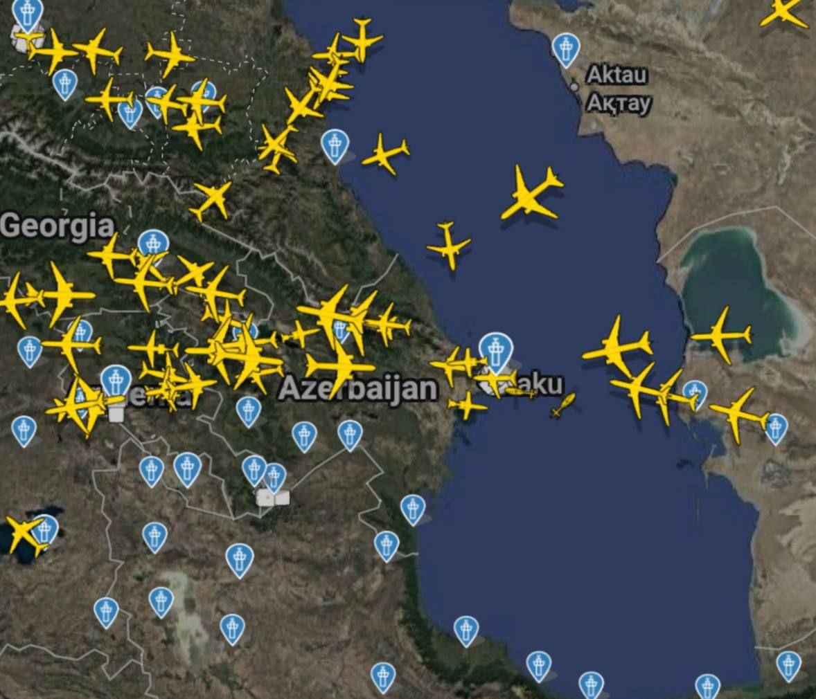 Eron osmonining yopilishi munosabati bilan ko‘plab yoʻlovchi samolyotlari Ozarbayjon havo hududidan foydalanmoqda.
