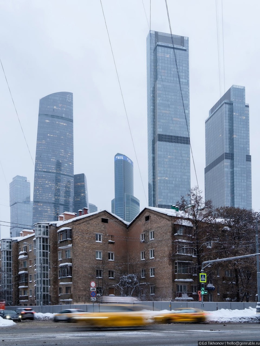 Комментарий автора фотографий Эда Тихонова (genruble): Самые контрастные виды Москвы скоро станут историей. Пятиэтажки района Камушки, стоящие у подножия ММДЦ, продолжают постепенно сносить. Последний раз свет в окнах этих домов горел ещё в 2020 году. Но к настоящему моменту видно, что снос происходит очень небыстро и медитативно. На месте микрорайона уже утверждены несколько высотных проектов. Квартал «Камушки» лишь в 2017 году был официально включён в программу реновации. К этому моменту некоторые дома отметили 55-летие, и по расчётным нормам инженеров срок эксплуатации уже был превышен. Стены ветшали, а ММДЦ только ширился. Поэтому снос микрорайона был лишь вопросом времени. Так в ближайшие годы «Камушки» превратятся из спального низкоэтажного райончика в ультрадорогой высотный квартал премиум-класса с одними из самых дорогих адресов Москвы. #москвасити2 #фото 😊 Небоскрёбы России в MAX