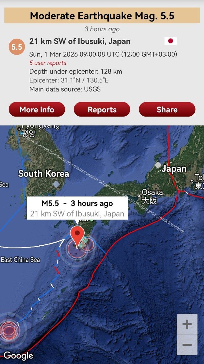 Пока на ОСТИ от 24 февраля отреагировала зона у Ибусуки (на русском звучит не очень хорошо 😅 ). Там термальные вулканические пески хорошие, суставы прогревают 👍