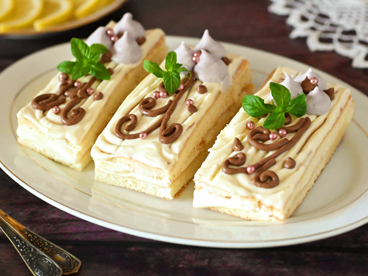 Эти пирожные многие помнят ещё со школьных буфетов и семейных праздников. Мягкий бисквит, сладкая пропитка и нежный масляный крем - всё просто, без модных изысков, но именно в этом и есть их особый шарм. Когда-то это пирожное казалось настоящим праздником, а чай с ним - самым вкусным на свете. Приготовить такие пирожные дома совсем не сложно. Никаких профессиональных навыков не нужно - достаточно миксера, духовки и немного терпения. А результат точно порадует: получится по-домашнему вкусно, с той самой атмосферой любимой классики. Готовьте с удовольствием и вспоминайте тёплые моменты🧡 Полный список ингредиентов - в конце⤵️ Начинаем с бисквита. В миску вбиваем 3 яйца категории С1, добавляем щепотку соли и 140 г сахара. Если хотим менее сладкий вариант - кладем 100 г. Взбиваем миксером 2 минуты, масса светлеет и увеличивается в объеме. Всыпаем 160 г просеянной муки частями, вмешиваем на низкой скорости. В конце добавляем 5 г разрыхлителя и быстро пробиваем тесто до однородности. Оно пол