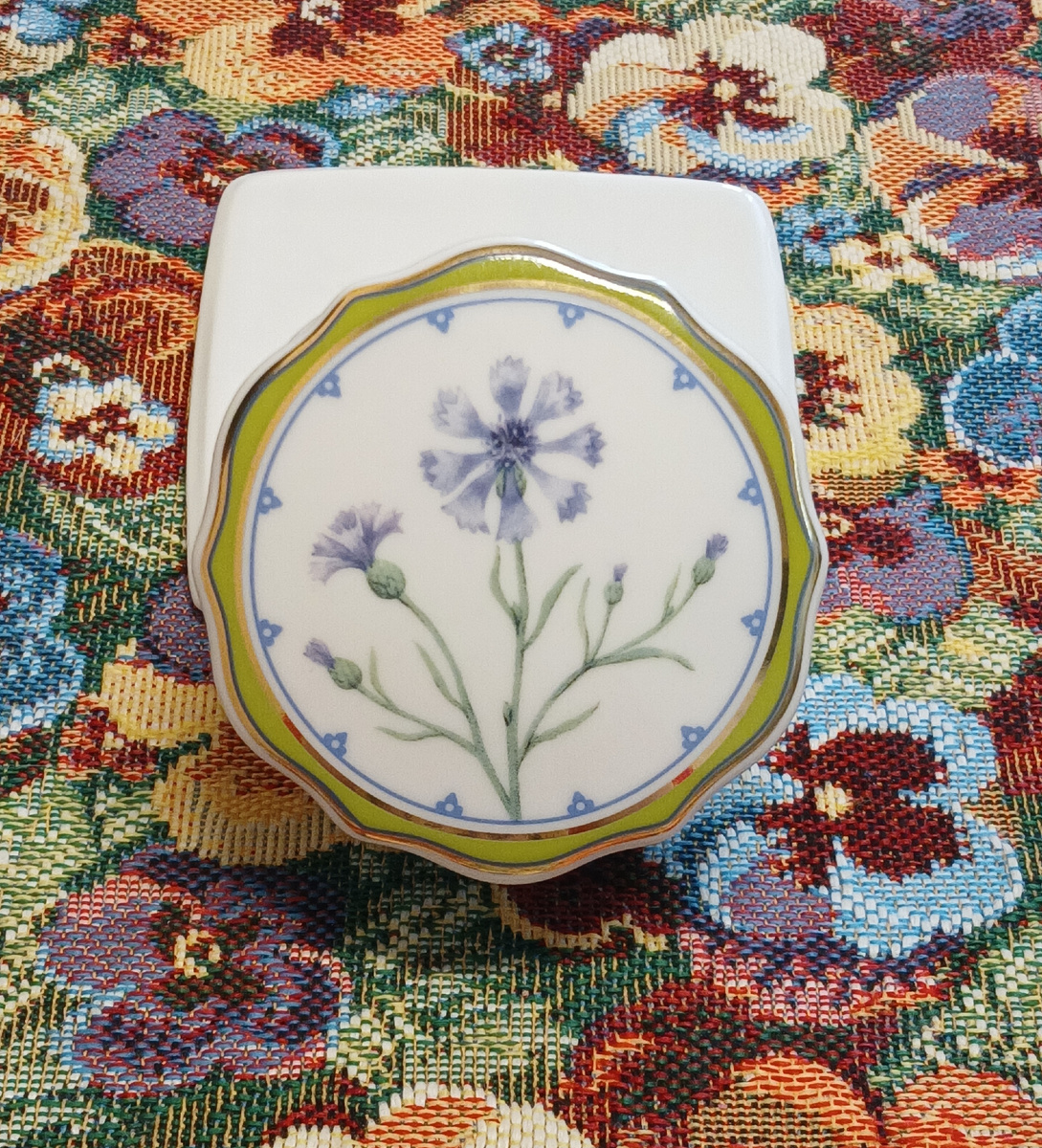 Так однажды на авито удалось приобрести и шкатулочку на форме круглая малая с дизайном Небесно-голубой Василек.