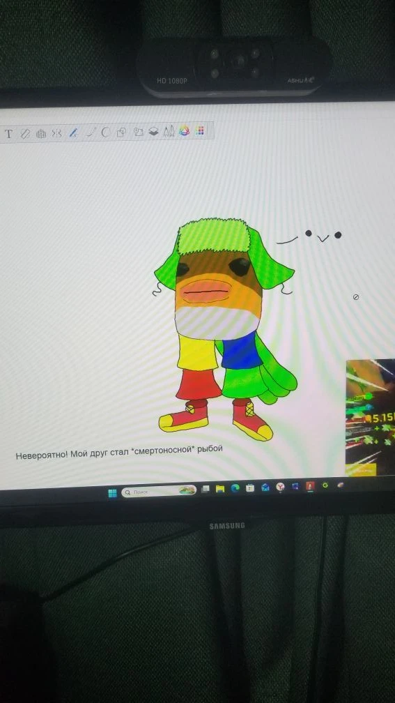 Буквально минут, может 10 назад смотрела ролик Владуса про игру, с угарной рыбой :_). Нарисовала Стёпку (кто не знает, стёпа - один из персонажей канала Владуса. Если коротко, то это зелёная сова)