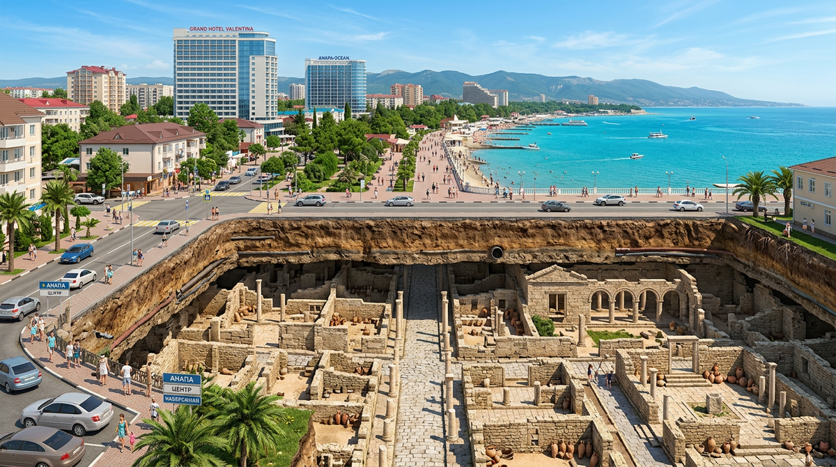 Гуляя по центру Анапы, мало кто задумывается, что под ногами может находиться целый античный город. И речь не о легендах — а о реальной Горгиппии, существовавшей здесь более двух тысяч лет назад. Но есть ли под современной Анапой скрытые подземные ходы и тайные тоннели? Или это всего лишь красивая городская легенда? В IV веке до нашей эры на месте современной Анапы располагалась Горгиппия — крупный торговый центр Боспорского царства. Здесь чеканили монету, производили вино и активно торговали с греческими колониями. Сегодня часть древнего города можно увидеть в археологическом музее-заповеднике «Горгиппия» в центре Анапы. Каменные улицы, фундаменты домов, винодельни — всё это находится буквально в нескольких метрах от современных зданий. Но археологи исследовали лишь небольшую часть древнего поселения. Остальная территория по-прежнему скрыта под жилыми кварталами. Местные жители давно рассказывают истории о подземных ходах под старой Анапой. По одной из версий, тоннели соединяли кварта