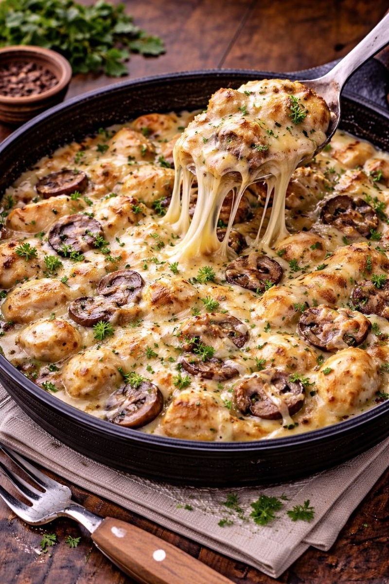 Иногда хочется чего-то «как в кафе». Чтобы сливочный соус, мягкая курица, грибы и тянущийся сыр сверху. Но доставать формочки, включать духовку и потом всё это мыть… Честно, не всегда есть настроение. Я люблю вкусно поесть, особенно что-то сливочное и сырное, но готовить долго — не мой стиль.