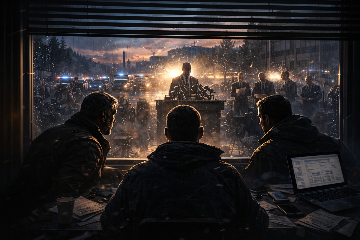 Метель не закончилась — она просто стала фоном. Машины внизу стояли на тех же местах. Никто не шёл на штурм, никто не пытался «решить вопрос» быстро. Всё происходило иначе — медленнее, аккуратнее, умнее.