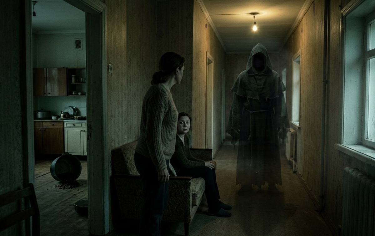 Той ночью Монах пришел за ответом. Я очнулась в своей спальне от того, что не могу дышать. Тело налилось свинцом — классический сонный паралич, но с одной жуткой деталью. В дверях стоял Он. Высокий, в истлевшей рясе, капюшон скрывал то, что должно было быть лицом. Но там была лишь черная пульсирующая пустота. Он бесшумно подошел и сел на край моей кровати. Я почувствовала, как холод от его призрачного тела просачивается сквозь мое одеяло, сковывая сердце.