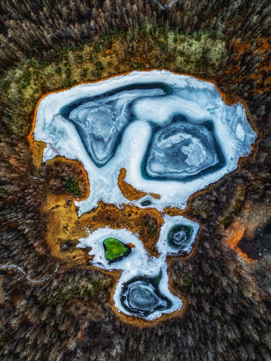 Он вошел в мой проект "Формы воды", был представлен на крупных фотовыставках в Дубае и Москве, побывал в Ельце и Белгороде. Озера сверху выглядят, как драгоценные камни в оправе бело-голубого льда. А подложкой для них служит лес. В данном проекте я исследую формы и природные объекты, связанные с водой, показываю ее творения, все так же обращаясь к мысли, что природа - лучший творец. Наш мир очень красив и гармоничен, важно наблюдать за ним и подмечать детали. У природы удивительные рисунки, которые на самом деле можно увидеть не только с неба. Например, когда я выхожу рано утром из дома в Москве, то прямо напротив автобусной остановки вижу каждый раз дерево. Зимой на нем, понятное дело, листьев нет, и его ветки рисуют причудливый узор на фоне синеющего неба, а порой покрываются волшебным инеем, летом на земле играют невероятные тени, напоминающие калейдоскоп. Наблюдайте за миром, друзья, он удивительный! #ФототурыпоРоссии