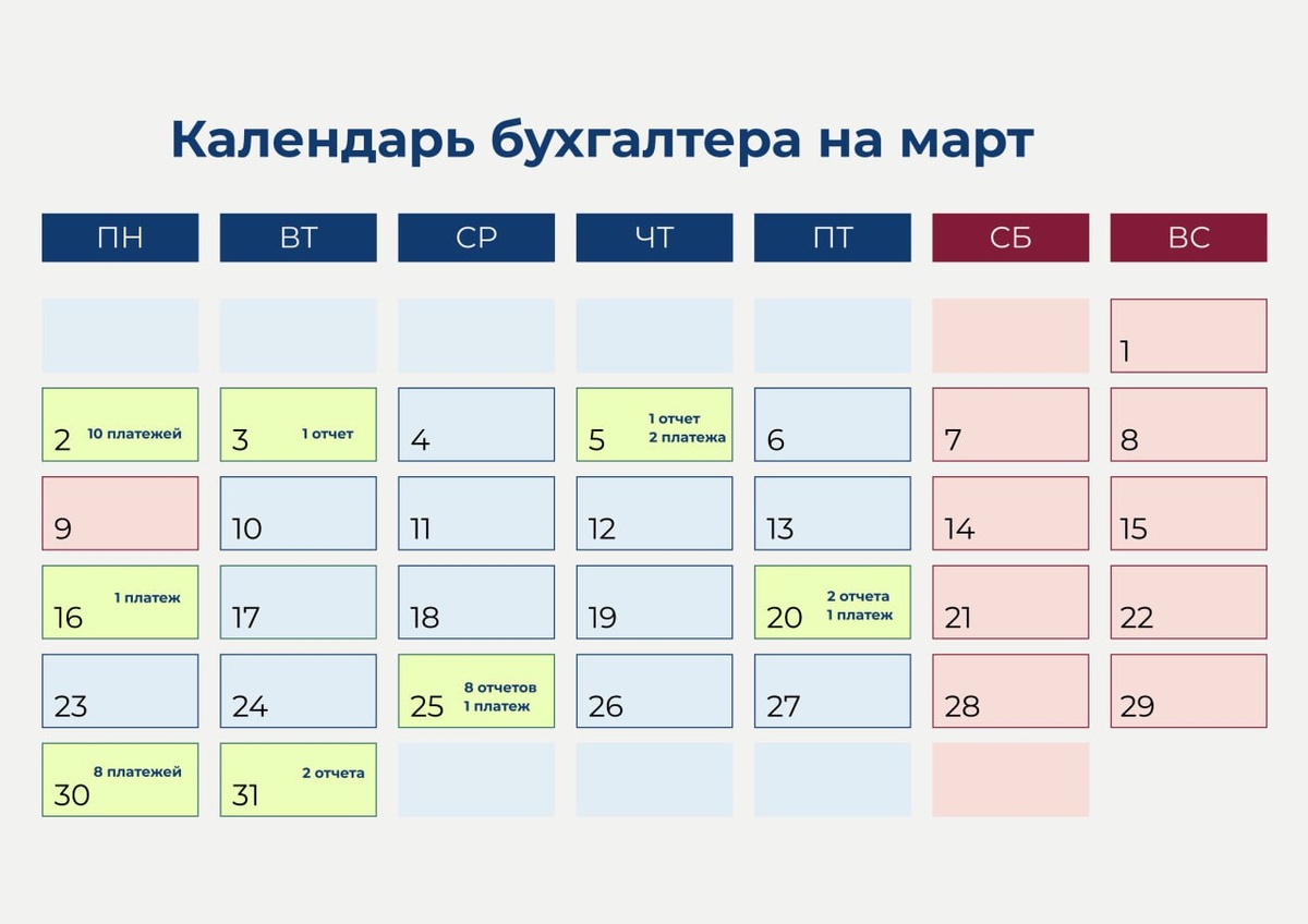 Да-да, уже март - месяц, когда весна пытается прийти, а отчетность даже и не уходила 🫠 🪻2 марта - здесь март взял нагрузку февраля на себя, в связи с этим работаем с первых дней активно, платим: 📋НДФЛ, удержанный в период с 1 по 22 февраля; 📋взносы на обязательное пенсионное, социальное и медицинское страхование за сотрудников за январь; 📋второй ежемесячный авансовый платеж по налогу на прибыль за I квартал, если платите авансы ежемесячно исходя из прибыли предыдущего квартала; 📋аванс по налогу на прибыль за январь, если рассчитываете и платите исходя из фактической прибыли; 📋1/3 НДС за IV квартал; 📋НПД за январь; 📋Налог на имущество за 2025 год; 📋Налог на землю за 2025 год; 📋Налог на транспорт за 2025; 📋НДПИ за январь. 🪻3 марта подаем уведомление по НДФЛ, удержанному с 23 по 28 февраля. 🪻5 марта слегка платежный, тут у нас НДФЛ к оплате, удержанный в период с 23 по 28 и сбор за рекламу в интернете за 4 кв 2025 года. Так же тут, если Вы на АУСН, то внести в личный