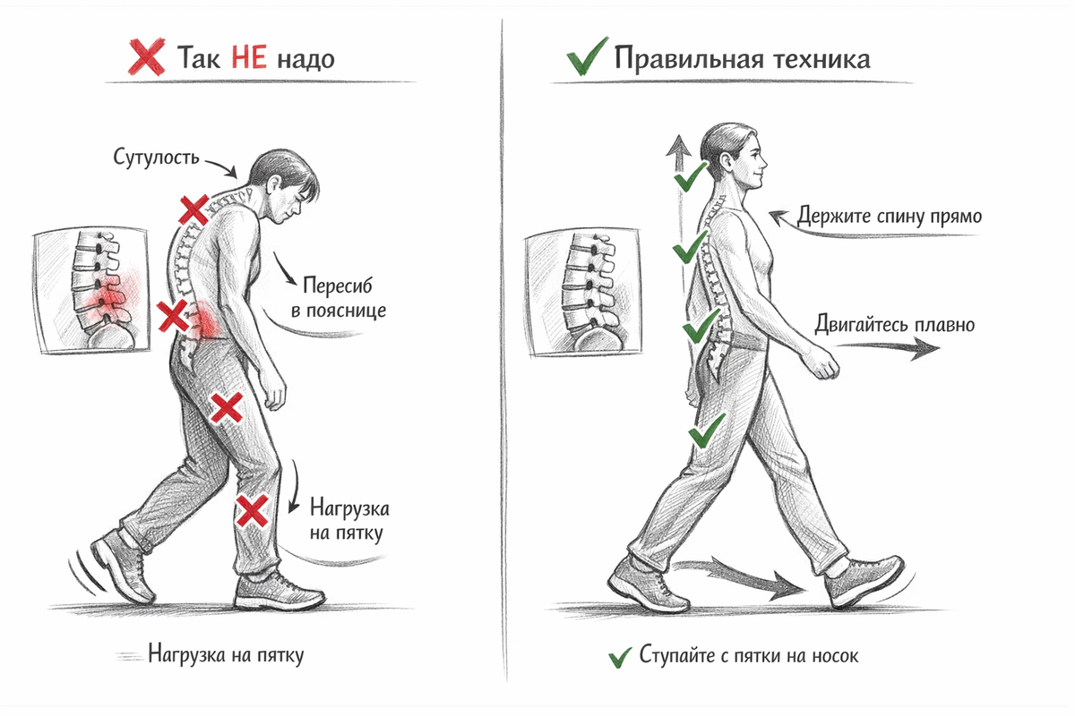 Как правильно ходить при боли в пояснице