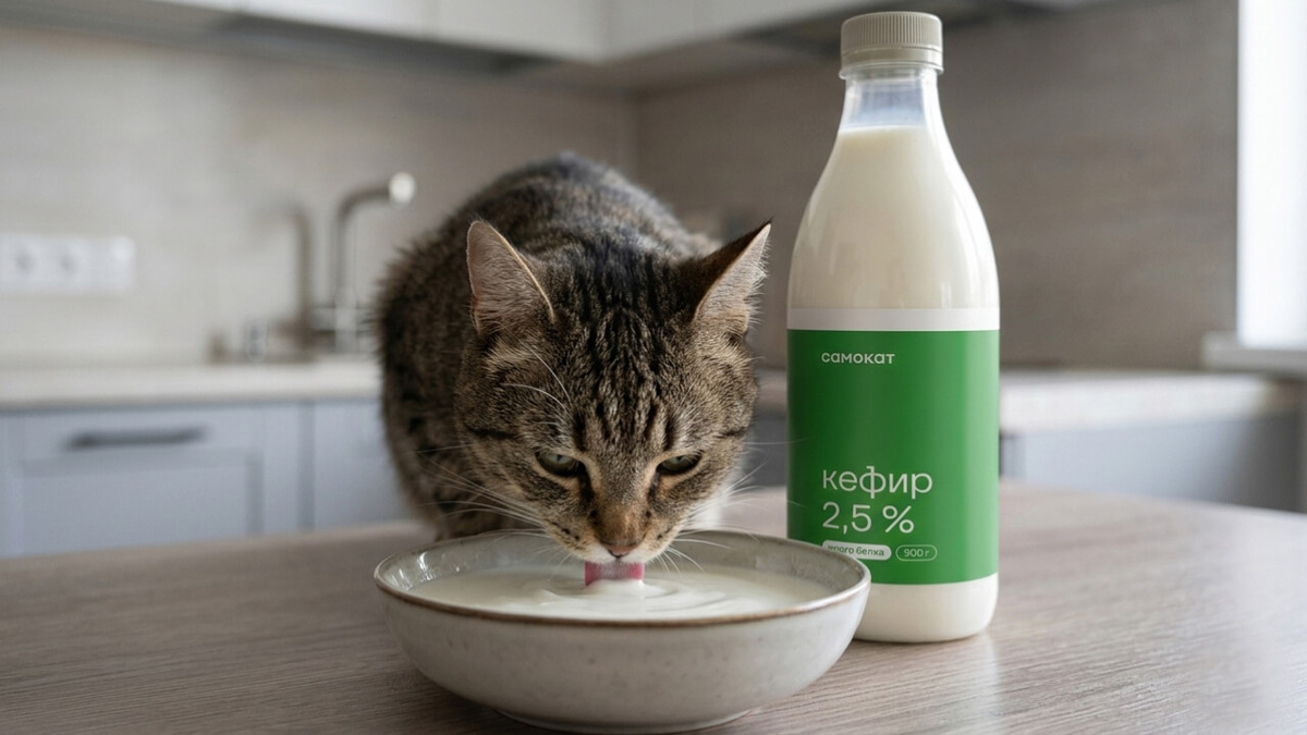 Если коротко: взрослой кошке небольшое количество свежего нежирного кефира давать можно — при условии, что нет непереносимости лактозы и хронических болезней ЖКТ. Дальше рассказываю про важные нюансы: скольки процентный кефир можно, что там при сочетании с кормом, какая обстановка с кефиром у стерилизованных и кастрированных, что говорят ветеринары, противопоказания и другое. Кефир — продукт двойного брожения: молочнокислого и спиртового. В процессе микроорганизмы «съедают» большую часть лактозы, поэтому её в кефире значительно меньше, чем в обычном молоке. Именно это делает его терпимее для взрослых кошек, у которых активность фермента лактазы снижается с возрастом. В составе — белок (около 3 г на 100 мл), кальций, витамины группы В, К, А, D, живые молочнокислые бактерии. Звучит неплохо, но важный нюанс: кошка — облигатный хищник с рационом, построенным на животном белке и жире. Кефир для неё — не еда, а максимум добавка. «Кормление полнорационным рационом не требует введения молочных