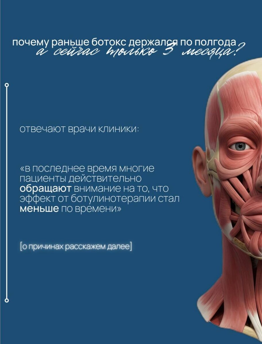 А пока разобрали в карусели причины, по которым эффект ботулинотерапии заканчивается быстрее, чем ожидалось изначально🥲