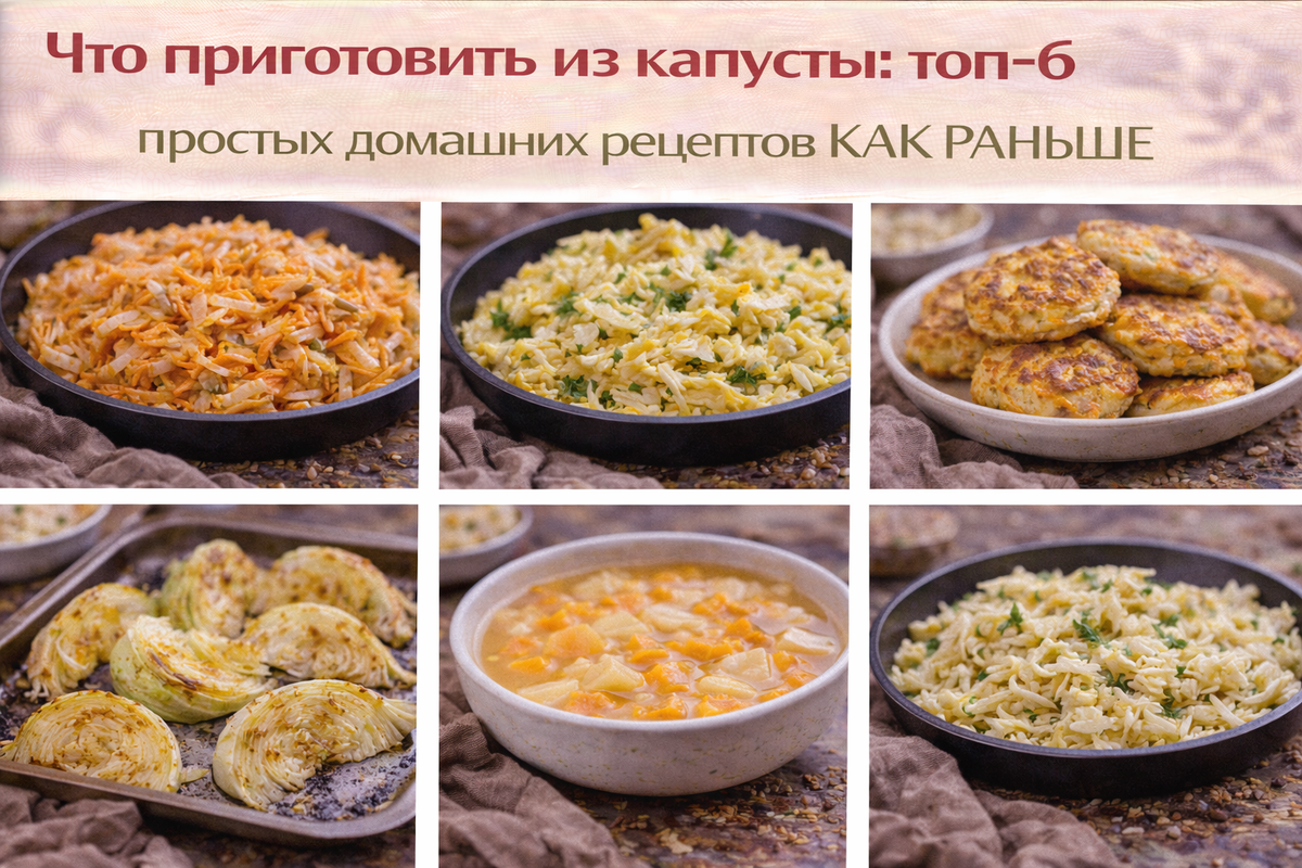 Капуста всегда была одним из самых удобных продуктов домашней кухни. Она недорогая, долго хранится и меняет вкус в зависимости от способа приготовления. Сырая остаётся хрустящей, тушёная становится сладкой, а запечённая приобретает насыщенный аромат. Главное правило — готовить капусту на среднем огне и не пересушивать. Ниже шесть проверенных рецептов. Ингредиенты: Приготовление: Ингредиенты: Приготовление: Ингредиенты: Приготовление: Ингредиенты: Приготовление: Запекай: 200°C - 25–30 минут. Края становятся слегка карамельными. Ингредиенты: Приготовление: Ингредиенты: Приготовление: Капуста меняет вкус в зависимости от времени приготовления. Чем дольше тушение, тем мягче и слаще становится блюдо.